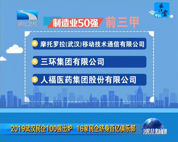 7月29日,2019武汉民营企业100强、武汉民营制造业企业50强排行榜正式发布。jinnian金年会集团再次入围,荣膺武汉民营企业100强第14位、武汉民营制造业企业50强第3名。